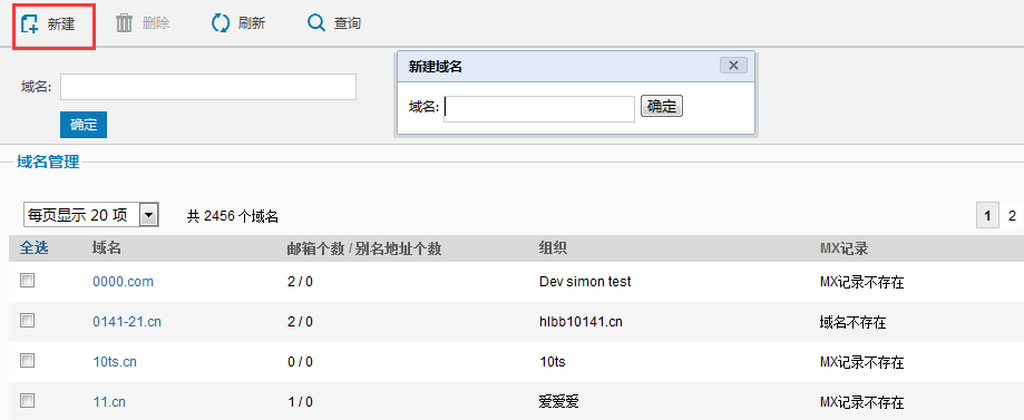 填写域别名设置,单击新建即可为选择的域添加新的域别名。
