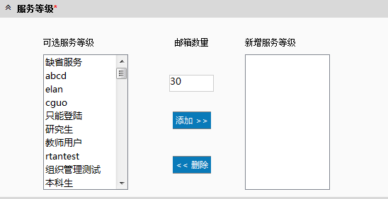 Coremail将各项邮箱服务按照不同的用户需求,可划分为不同的等级,每个服务等级为所提供服务的合集,每个邮箱都与一个指定的服务等级绑定。管理员可以进入系统管理页面-运维管理-用户服务等级页面后进行操作。