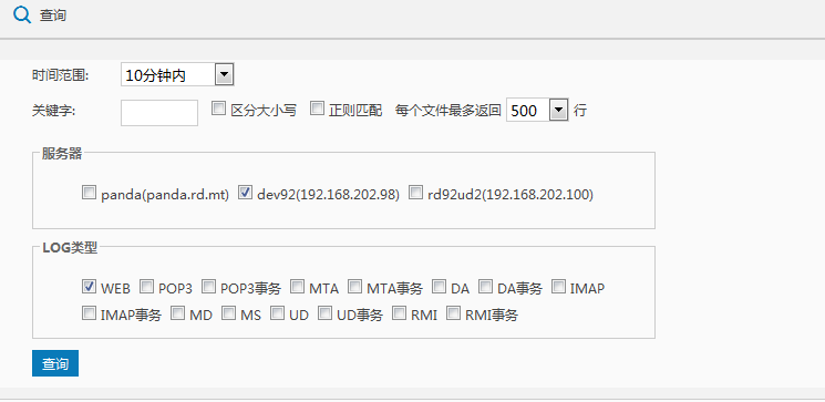 通过系统管理页面-运维管理-日志查看,可以查看服务器日志,邮件投递日志,投递失败日志和网盘操作日志。